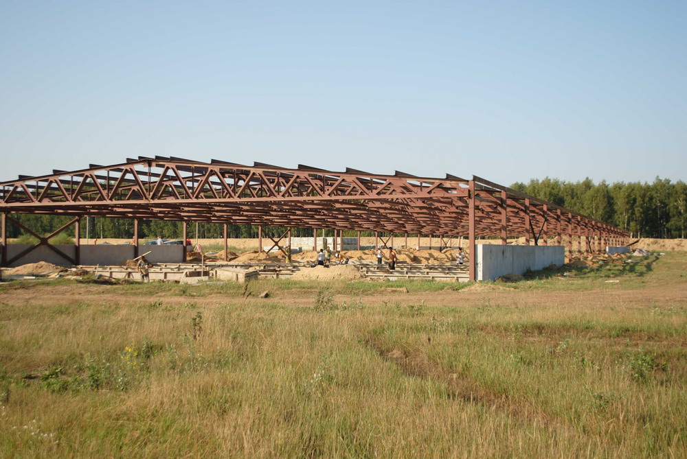 Завершен монтаж металлоконструкций свинокомплекса размером 26х108 Владимирская область, Петушинский район, д.Родионово (заказчик КФХ Авакян Б.Р.) Вес металлоконструкций 170 тонн.