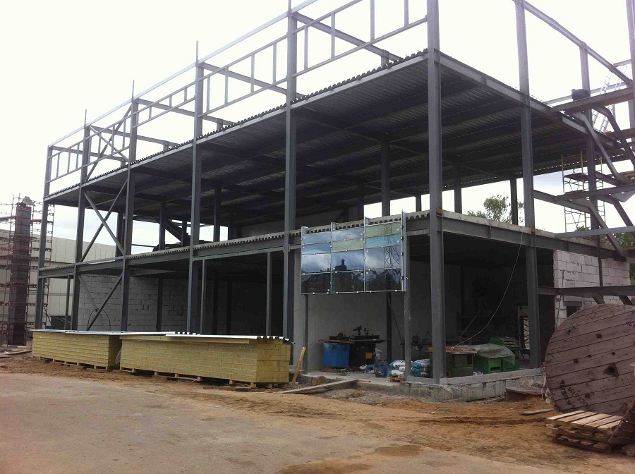 Общий вес металлоконструкций 81 тонна. Срок от заключения договора до завершения монтажа 3 месяца. Начаты работы по монтажу ограждающих конструкций кровли и стен.