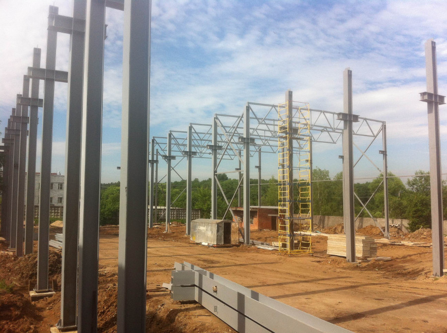 Начат монтаж металлоконструкций производственного здания в дер. Жучки, Сергиево-Посадского района.