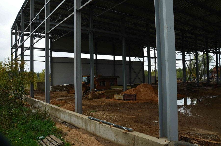 Идет монтаж металлоконструкций и сэндвич панелей производственного здания в дер.Жучки, Сергиево-Посадского района.