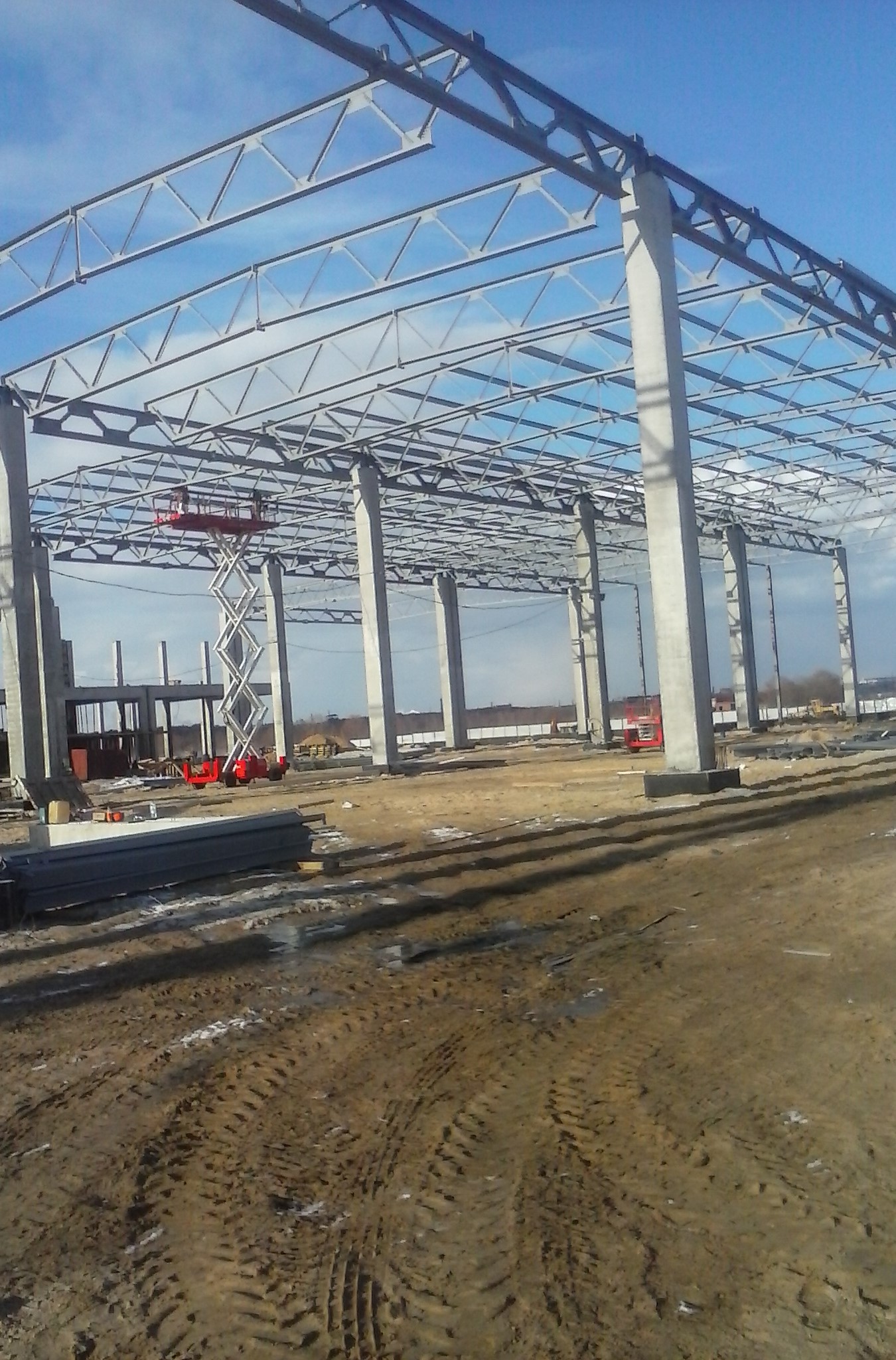 Производится монтаж металлоконструкций складского комплекса "Магнит" по адресу: Нижегородская область, г. Дзержинск. Общий вес поставляемых конструкций 718 тонн.