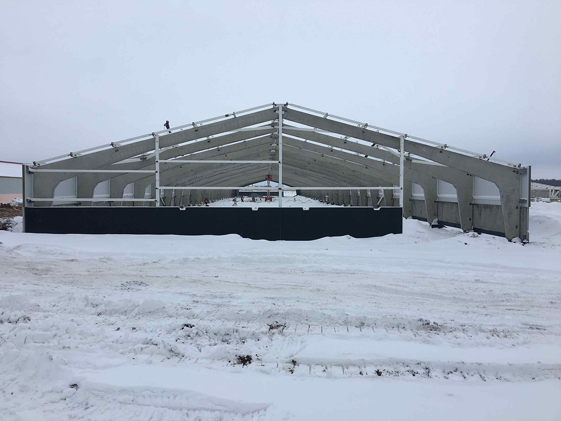 Возведение в любое время года. При строительстве зданий из металлоконструкций отсутствуют процессы, требующие определенного температурного режима или влажности (не используются растворы), а потому строить их можно при любой погоде.