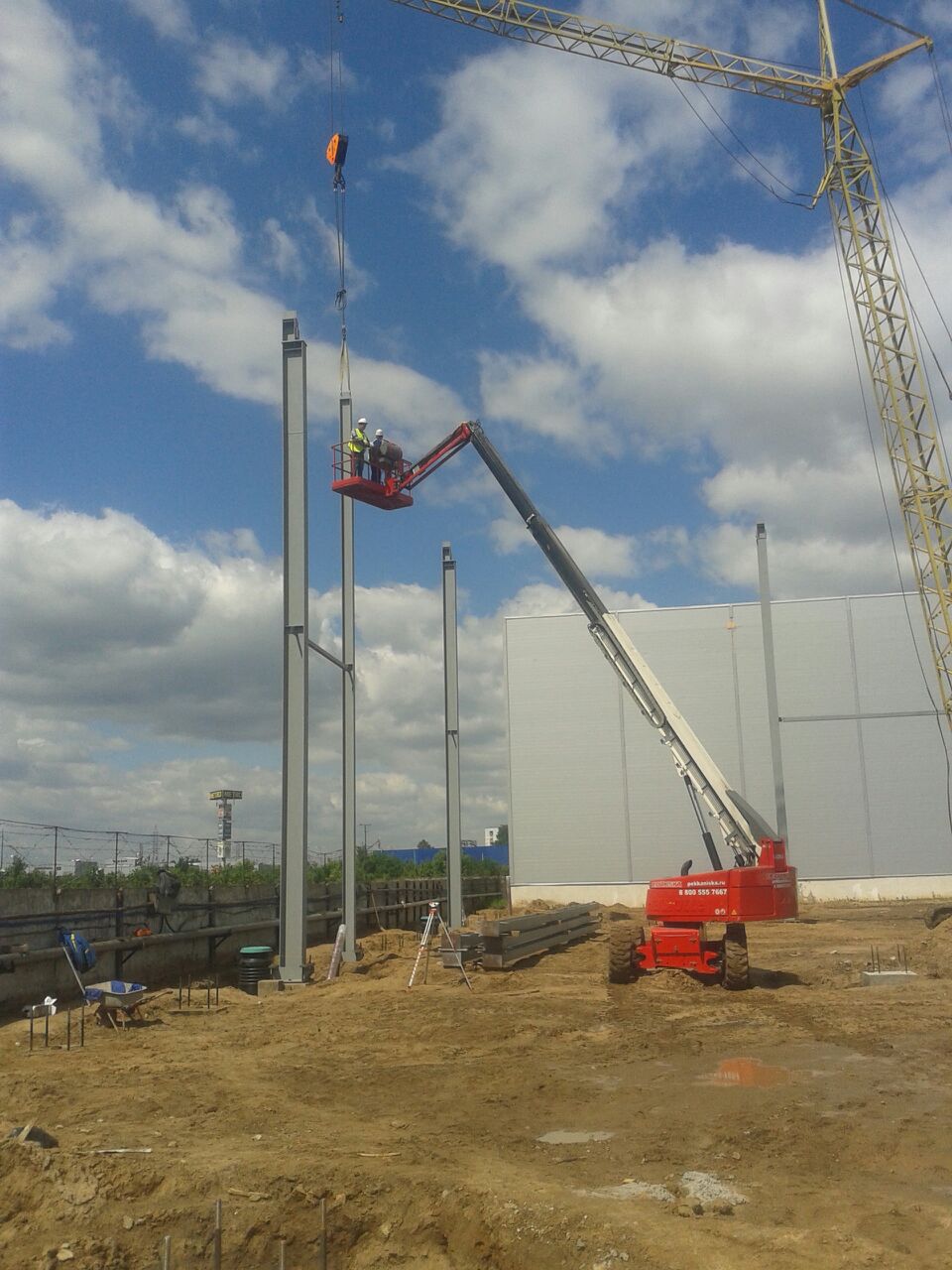 Начат монтаж металлоконструкций складского комплекса с административной вставкой в поселке Томилино. Общий вес конструкций 231 тонна.