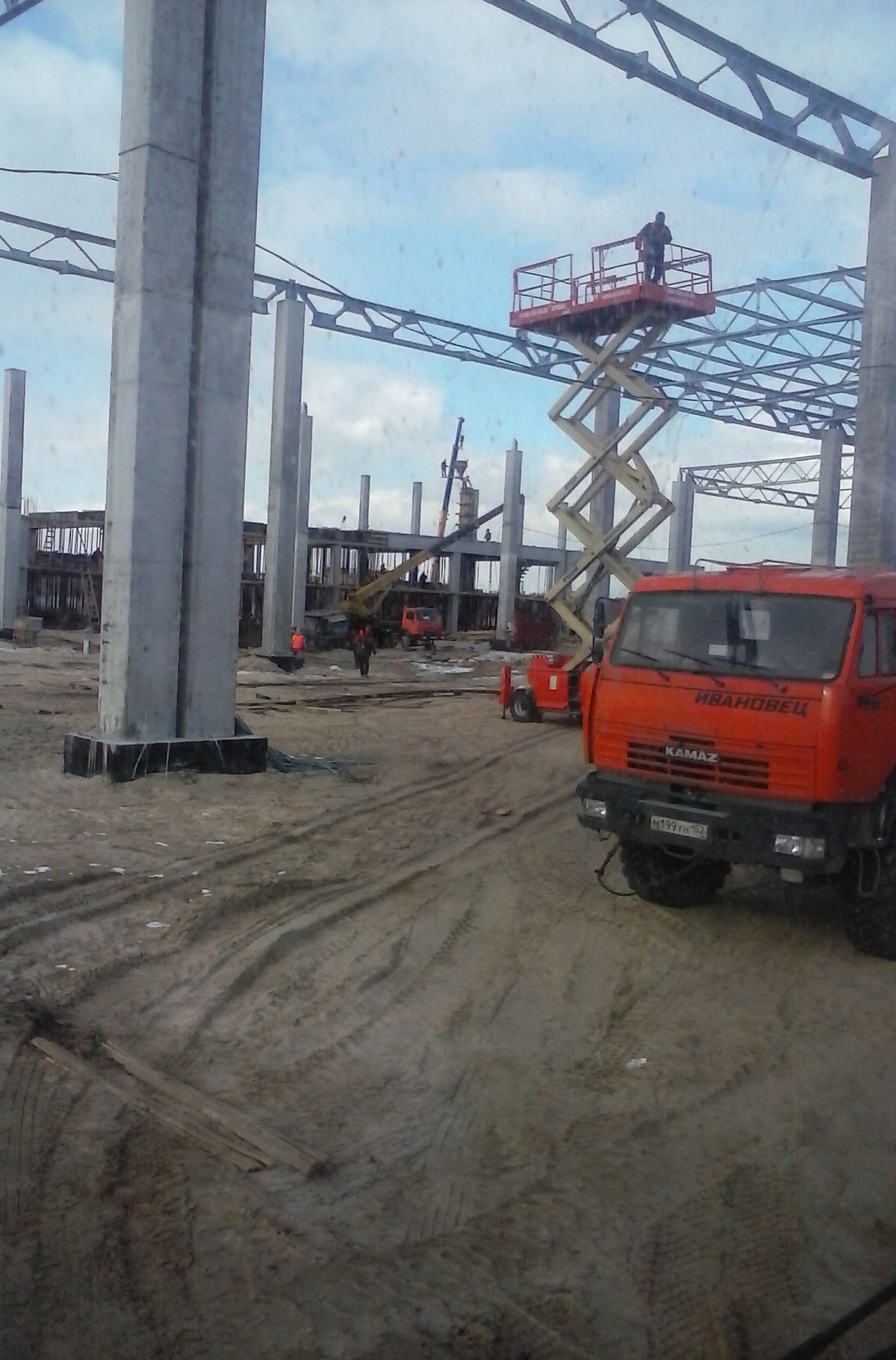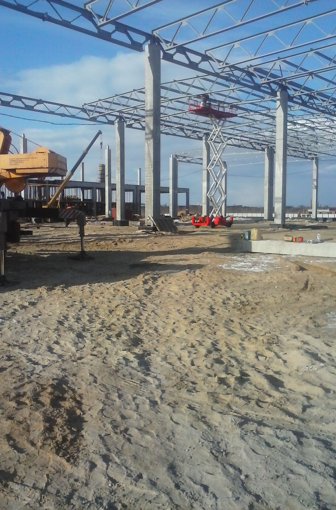 Производится монтаж металлоконструкций складского комплекса "Магнит" по адресу: Нижегородская область, г. Дзержинск. Общий вес поставляемых конструкций 718 тонн.