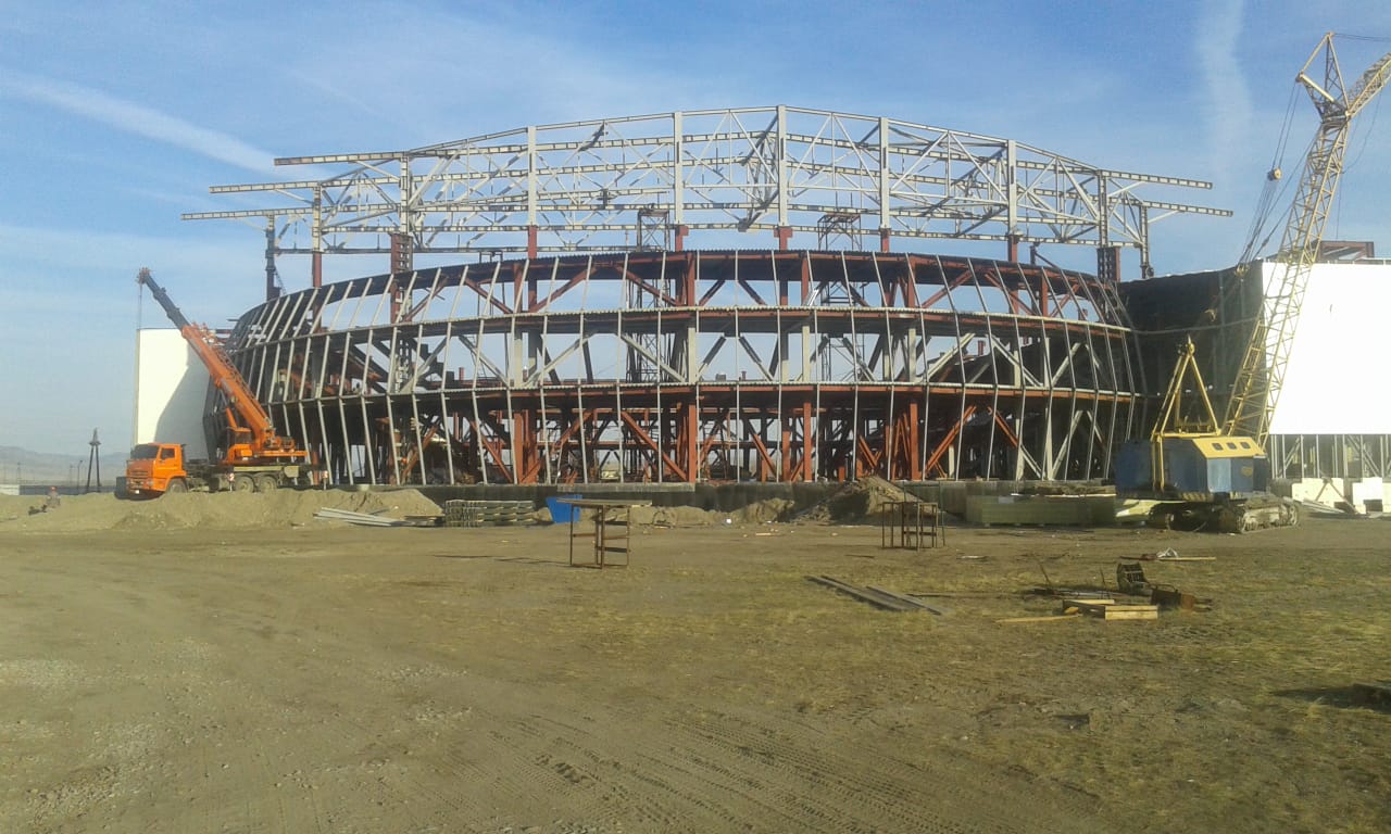 Начаты работы по монтажу конструкций покрытия Спортивного-культурного центра по адресу: пгт. Каа-Хем, Кызыльский кожуун.
